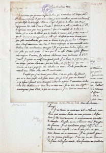 Les lettres sont numérotées de 199 à 296 plus un bis. Petit manque au centre de la lettre 206 provoque par une brûlure. Une lettre de M. Vielle à l'abbé de Lamennais se trouve au verso d'une autre de Félicité à son frère. Petit manque dans le haut de la lettre 275.- Des résumés de chaque lettre peuvent être communiqués sur demande.