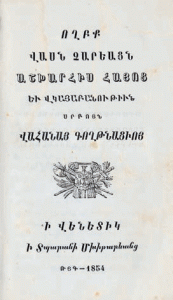 [ARMÉNIE], Soperk Haykakan n° 13 à 18. Venise, San Lazzaro, 1854. En arménien classique.1 vol. in-16, demi-reliure. Sous un même volume,5 petites chroniques; 1 page déchirée.