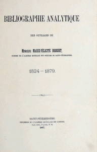 [BROSSSET Marie-Félicité], Anonyme Bibliographie analytique des ouvrages de M. Marie-Félicité Brosset, 1824-1879. Saint-Pétersbourg, Académie impériale des sciences, 1887.