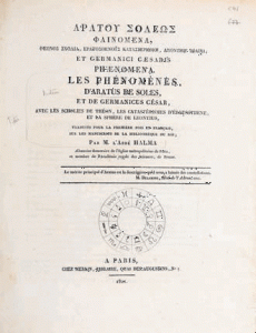 ARATUS Germanicus, Theon, etc. Écrits astronomiques. Paris, Merlin, 1821. En grec ancien et français. 1 vol. in-4, demi-reliure. Reliure en très mauvais état; mais manuscrit tout à fait complet.