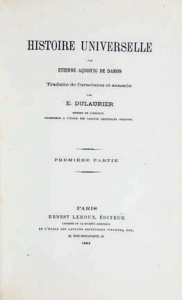 ASOLIK de TARON Etienne Histoire universelle. Paris, Leroux, 1883 et 1917. 2 vol. in-8, demi-reliure à coins. Le premier volume est traduit par E. Dulaurier; le second par F. Macler.