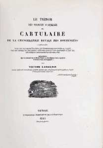 LANGLOIS Victor Le trésor des chartes d'Arménie, ou Cartulaire de la chancellerie royale des Roupéniens. Venise, San Lazzaro, 1863.- Extraits de la Chronique de Sempad et de son continuateur.