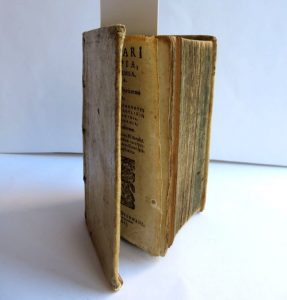 1 volume petit in-8° au format in-16, reliure d'époque en vélin rigide, filets à froid sur les plats, couture hollandaise sur les mors; titre, date et auteur inscrits au dos à l'encre, en grande partie effacés. Tranches bleutées légèrement frottées. 684 pages en grec et latin du texte le plus célèbre du grand poète grec.