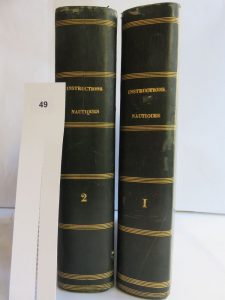 1ère partie : XLVIII et 612 pages, XXXIV seconde partie : VII et 700 pages, XII. Traduction de MM. Le Predour, Darondeau et Reille. - 1ère partie: Traversée d'Europe aux différentes parties de l'Inde, Côtes Sud, Ouest et N.O. de l'Australie; Détroits à l'est de Java; Côte Est d'Afrique depuis le Cap de Bonne Espérance jusques et y compris la Mer Rouge; Côte d'Arabie jusqu'a l'entrée du Golfe Persique. 3ème édition revue sur la 7ème édition anglaise par J. Lafont, Capitaine de frégate.