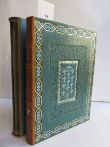 1 volume in-4°, reliure éditeur sous étui en plein chagrin bleu, avec décors à froid et dorés sur les plats et au dos, tête dorée. Dos parfaitement insolé. Ouvrage tiré à 2465 exemplaires, celui-ci porte le n° 644. Enluminures couleur réalisées par Lucy Boucher. Exemplaire sans rousseur.