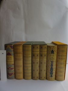 Ensemble de 7 volumes in-4°, cartonnage éditeur d'après la maquette de Paul Bonet, soit 2 volumes de Tolstoï « La guerre et la paix », « Romans » de Joseph Kessel, de Graham Greene, de John Steinbeck et d'Emile Zola et « Autant en emporte le vent » de Margaret Mitchell. Tous les volumes sont des années 60 et illustrés en couleurs. Complets des rhodoïds et étuis sauf l'étui du volume de Margaret Mitchell.