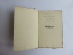 sans éditeur, « cette petite tragédie n'est pas mise dans le commerce ». 1 volume broché in-8°, couverture illustrée grise, papier épais. Une mouillure prononcée sur le premier plat de couverture, intérieur propre avec de très rares piqures. Ouvrage tiré à 300 exemplaires, celui-ci porte le n°231 sur 250 imprimés sur vergé après 50 sur papier Japon. 11 pages, frontispice. Envoi d'Ambroise Vollard à Mr Guino « à Monsieur Guino avec mes meilleurs souvenirs ». Richard Guino, sculpteur, qui au début de sa carrière à la demande d'Ambroise Vollard, le marchand d' Auguste Renoir, devint « les mains de Renoir » trop handicapé par ses rhumatismes pour travailler seul. Je cite « Cette collaboration, caractérisée par la remarquable communion d'esprit et de sensibilité qui se développe entre les deux artistes, dure jusqu'en 1918. Elle aboutit à la création d'un ensemble de pièces considérées comme l'un des sommets de la sculpture moderne »Edition originale rare, Les deux croquis, non signés, sont de Pierre Bonnard, son nom apparaitra seulement dans la réédition, chez Crès en 1918.