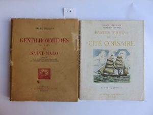 1 volume in-4° en feuilles sous couverture rempliée. Défaut au dos de la couverture avec petit manque de papier. Collationné et complet, 127pp, illustré de 94 lithographies originales en couleurs, aquatintes et crayons, in-texte et hors-texte. Ouvrage tiré à 509 exemplaires, celui-ci porte le n°58, signé par l'auteur en début d'ouvrage. Bon exemplaire intérieur, toujours recherché. On joint du même auteur "Fastes marins de la cité corsaires" 1954 à Saint-Malo. 75 pp. illustré de 38 lithofortes et enrichi de 8 reproductions couleur de navires. Exemplaire modeste, couverture à rabats passée et roussie.