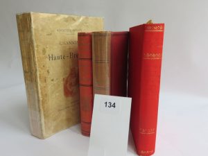 1 volume in-12, reliure éditeur en pleine percaline rouge, dos lisse avec titre et auteur dorés passablement effacés. On joint dans la même collection et du même auteur dans la série Folklore de l'Ille-et-Vilaine, « De la vie à la mort (suite) », 1898. Toujours dans la même collection, par Paul Sébillot « Coutumes populaires de la Haute-Bretagne », reprint de 1967. Pour finir, d'Adolphe Orain, chez Hyacinthe Caillère, éditeur, à Rennes, 1902, 1 volume broché, intérieur propre mais couverture sale et défraichie, mauvaise restauration à la colle. Ensemble de 4 volumes :