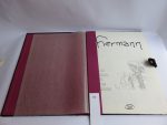 1 volume in-folio, planches en feuilles non reliées sous chemise de tissu noire, avec auteur et éditeur dorés sur le premier plat; l'ensemble est fermé par un bouton pression. Bel état, deux coins légèrement usés. Tirage de tête à 500 exemplaires pour cette bande dessinée. Exemplaire n° 463 collationné et complet, y compris de la planche supplémentaire numérotée et signée par l'auteur. Bel exemplaire.