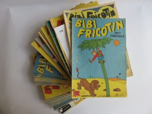 Lot de 28 albums brochés Bibi Fricotin Lot de 28 albums brochés Bibi Fricotin Années 1950 (prix en anciens francs), nos 4, 5, 6, 7, 8, 9, 10, 13, 15, 16 (2 ex.), 17, 19, 20, 21, 22, 23, 24, 26, 27, 29, 30, 31, 32, 34, 36, 41 (EO), 53 (EO 1962)...