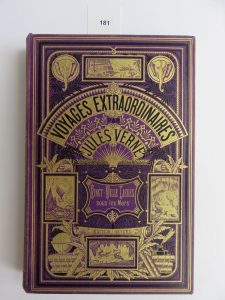 1 volume in-8°, cartonnage éditeur aux deux éléphants, percaline violette. Bon exemplaire avec le dos assez insolé; très beau premier plat, un coin légèrement enfoncé, les ors y compris ceux du dos sont frais; belles gouttières, pas de cahiers déboités. Catalogue BR in-fine, gardes bleues, rousseurs éparses.