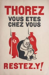 ANONYME Affiche « Thorez vous êtes ANONYME Affiche « Thorez vous êtes... » Paix et Liberté ( ?), c.1951. 59 x 40 cm. «Торез, вы у себя дома - там и оставайтесь!» Предположительно изд. Paix...