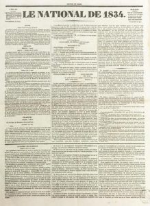 Le Nationale de 1834 Le Nationale de 1834. Paris, 10 mai 1837. 4 pp. in-folio. Contient une notice sur le duel et la mort de Alexandre Pouchkine. Ле Насьональ де 1834.