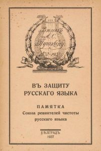 In memoriam Alexandre Pouchkine In memoriam Alexandre Pouchkine. Pour la défense de la pureté de la langue russe. Belgrade, 1937. 12o, broché. В защиту русского языка : Памятка Союза ревнителей...