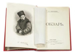 [UCRAINICA] br [UCRAINICA] CHEVTCHENKO, Taras. Kobzar. Kiev, Th.Ioagansohn, 1888. 4o, belle reliure en percaline rouge. Portrait gravé de l'auteur. Très bel exemplaire. ШЕВЧЕНКО, Тарас Григорьевич (1814-1861).