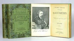 TOLSTOÏ TOLSTOÏ, Alexis, comte. OEuvres complètes. St.Pétersbourg, A.Marx, 1907. 3 vol. In 8o. Exlibris manuscrit de Jean LEBEDEFF (1884- 1972), peintre et illustrateur.