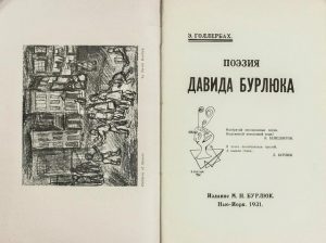 GOLLERBACH GOLLERBACH, Erich. La poésie de David Bourliouk. New-York, édition de Maria Bourliouk, 1931. 8o, broché. Illustrations. ГОЛЛЕРБАХ, Эрих Федорович (1895-1942) Поэзия Давида...