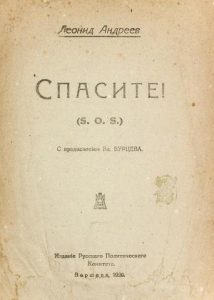 ANDRÉÏEV ANDRÉÏEV, Léonid. Au secours ! (S.O.S.) Préface de Vladimir BOURTSEV. Varsovie, Comité politique russe, 1920. 8o, broché. АНДРЕЕВ, Леонид Николаевич (1871-1919). Спасите! : (S.O.S.) / Предисл....