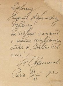Filmées ». Н.Евреинов Paris 29.XI-930».