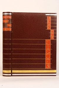ARÈNE (Paul). Jean-des-Figues. Paris, Chez l'artiste, 1927. In-4, maroquin grenat, important décor sur les plats et le dos de jeux de filets dorés et argentés insérant le titre au dos et sur le premier plat dans des cartouches mosaïqués de...