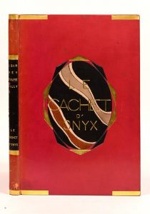 BARBEY D'AUREVILLY (Jules). Le Cachet d'onyx. Léa. Paris, La Connaissance, 1919. In-8, veau fushia, décor géométrique sur le premier plat composé de pièces de maroquin de différentes couleurs, titre doré, pièces dorées aux coins, dos lisse...
