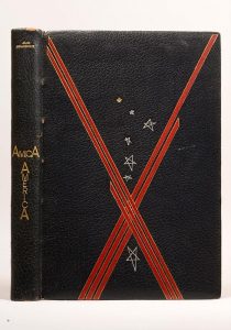 GIRAUDOUX (Jean). Amica America. Paris, Émile-Paul frères, 1928. In-4, maroquin bleu nuit orné au premier plat de fines bandes de maroquin rouge mosaïqué serties d'un filet doré s'entrecroisant et de quelques petites étoiles argentées, dos...
