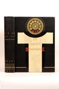 LACORDAIRE (Henri). Vie de Saint-Dominique. Paris, Jacques Beltrand, 1919. In-4, maroquin ébène, plat supérieur orné de la représentation stylisée du saint dont la bure est entièrement mosaïquée de galuchat ivoire et sur laquelle se détache...