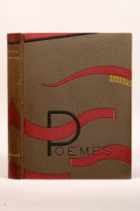 MORAND (Paul). Poèmes. Toulouse, Éditions Richard, 1926. In-4, maroquin gris souris orné d'un décor géométrique de maroquin framboise encadré de filets à froid, petits cercles dorés, titre à froid sur le premier plat, dos lisse titré,...