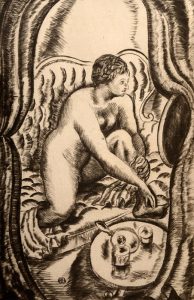– MORAND (Paul). La Fleur double. Paris, Émile-Paul frères, 1924. In-4, maroquin bleu clair, dos lisse, tête dorée, non rogné, couverture et dos, étui. Édition originale, illustrée d'un frontispice dessiné et gravé au burin par Jean-Gabriel Daragnès. Exemplaire sur papier vergé de Rives. Envoi autographe signé de l'auteur. Dos passé.#– MORAND (Paul). Lewis et Irène. Paris, Émile-Paul frères, 1925. In-4, maroquin brun, dos lisse, tranches dorées sur témoins, doubles gardes, couverture et dos. Première édition illustrée, ornée de 15 eaux-fortes hors texte en couleurs par Jean Oberlé. Exemplaire sur vergé de Rives. Envoi autographe signé à Nina de Polignac.#– LOUŸS (Pierre). Contes antiques. Paris, Éditions du bois sacré, 1929. In-4, maroquin brun, dos lisse, doubles gardes, tranches dorées sur témoins, couverture et dos. Édition illustrée de 31 compositions de Sylvain Sauvage gravées sur cuivre. Tirage à 237 exemplaires, celui-ci un des 185 sur vélin de Montval spécial. #La doublure et les gardes n'ont pas été montées.