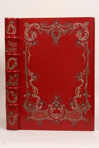 PRÉVOST (Abbé). Histoire de Manon Lescaut et du chevalier des Grieux. Paris, Maurice Magnier, 1889. In-4, maroquin rouge, grand encadrement dans le style du XVIIIe siècle rococo mosaïqué de plusieurs tons de rose avec fleurettes turquoise, dos...