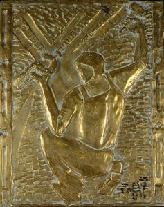 GANDOUIN (Jacques). Les Métiers. Londres, Trevwell, 1986. In-folio, en feuilles, boîtier de l'éditeur de velours bleu marine, premier plat orné d'une grande plaque en bronze enchâssée représentant un maréchal-ferrant et signée par Toffoli.