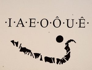 HAJDU (Etienne). Le Chant des Voyelles. Sl., n.n., 1974. In-2 oblong, en feuilles, couverture illustrée par Etienne Hadju, étui toilé ocre.