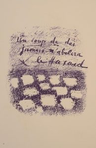 MALLARMÉ (Stéphane). Un coup de dés jamais n’abolira le hasard. Paris, Les Amateurs du livre et de l'estampe moderne, 1961. In-2, en feuilles, couverture repliée illustrée, chemise et étui cartonnés peints.