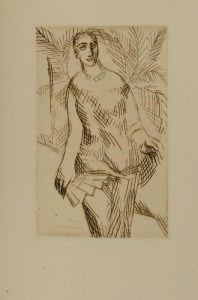 Édition originale illustrée de 9 eaux-fortes originales de Juan Gris dont 5 hors texte.#Tirage à 112 exemplaires signés par l'auteur et l'illustrateur, celui-ci un des 10 exemplaires de Chapelle, le n°II, sur Arches.#On joint le rare bon de souscription à l'ouvrage.#Dos partiellement décollé.