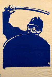 69 x 46 cm. Sérigraphie en bleu foncé. Atelier populaire ex-école des Beaux-arts.