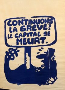71 x 51 cm. Sérigraphie en bleu sur papier d'emballage. École nationale supérieure des Beaux-arts. Très rare. Pliure.