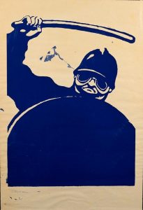 69 x 46 cm. Sérigraphie en bleu foncé. Atelier populaire ex-école des Beaux-arts.