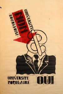 84 x 57 cm. Sérigraphie en rouge et noir sur papier d'emballage. École nationale supérieure des Beaux-arts. Très rare. Légers accrocs.