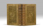2 volumes in-folio (319 x 195 mm), maroquin olive, large dentelle aux petits fers, semé de grandes flammèches dorées, emblème (colombe aux ailes déployées) au centre et jeux de filets droits et courbes disposés autour en forme de soleil, dos orné avec le même emblème répété, roulette intérieure, tranches dorées sur marbrure (Reliure de l'époque).