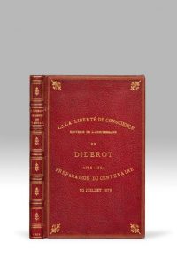 JOLI EXEMPLAIRE EN MAROQUIN, portant cette inscription dorée sur le premier plat : L La liberté de conscience, souvenir de l'anniversaire de Diderot 1713-1784, préparation du centenaire 30 juillet 1879.