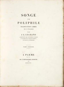 COLUMNA (Francesco). Songe de Poliphile. Parme, Bodoni, 1811