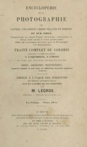 LEGROS, ADOLPHE{CR}Encyclopédie de la Photographie sur papier, collodion, verre négatif et positif et sur toile. {CR}Chez l’auteur, Paris, 1856.