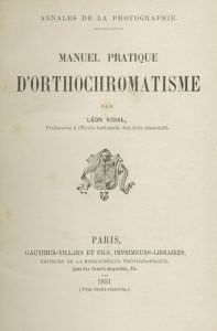 RECUEIL{CR}Cinq ouvrages reliés en un volume.{CR}Vidal, Léon{CR}Manuel pratique d’orthochromatisme.{CR}Gauthier-Villars, Paris, 1891.{CR}suivi de{CR}Cordier, V.{CR}Les insuccès en photographie.{CR}Gauthier-Villars, Paris, 1880.{CR}suivi de{CR}Jardin, Georges{CR}Recettes et conseils inédits de l’amateur photographe.{CR}Paris, 1893.{CR}suivi de{CR}Colson, R.{CR}La photographie sans objectif.{CR}Gauthier-Villars, 1887.{CR}Avec une photographie originale du Dôme des Invalides à Paris.{CR}suivi de{CR}Berget, Alphonse{CR}Photographie des couleurs.{CR}Gauthier-Villars, Paris, 1891.{CR}Belle reliure d’époque.