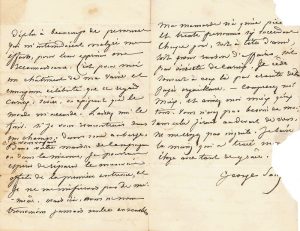 Crieuse lettre pour éconduire une admiratrice (qui se fera passer pour George Sand lorsqu’elle voyagera en Italie avec Balzac quelques mois plus tard). « Recevez l’expression de toute ma gratitude pour la bienveillance dont vous m’honorez. Soyez sûre que les amis inconnus que j’ai dans le monde et dont vous daignez faire partie, ont devant Dieu, une communion intime avec moi. Mais vous qui me paraissez une femme supérieure, je puis vous dire ce que je n’oserais dire à toutes les autres. Ne cherchez point à me voir. Les louanges me troublent et m’affectent péniblement. Je sens que je ne les mérite point. Je vous semblerais froide et je vous déplairais sans doute, comme j’ai déplu à beaucoup de personnes qui m’intimidaient malgré mes efforts pour leur exprimer ma reconnaissance. C’est pour moi un châtiment de ma vaine et ennuyeuse célébrité, que ce regard curieux, sévère, ou exigeant que le monde m’accorde. Laissez-moi le fuir. Si je vous rencontrais dans un champ, dans une auberge, si je vous voyais dans votre maison de campagne, ou dans la mienne, je pourrais espérer de réparer le mauvais effet de la première entrevue, et je ne me méfierais pas de moi-même. Mais ici, nous ne nous trouverions jamais seules ensemble. Ma mansarde n’a qu’une pièce, et trente personnes s’y succèdent chaque jour, soit à titre d’amis, soit pour raison d’affaires, soit par oisiveté de curieux. Je cède souvent à ceux-là par crainte d’être jugée orgueilleuse. Comprenez-moi mieux et aimez-moi mieux qu’eux tous. Vous n’avez pas besoin de moi ; sans cela j’irais au-devant de vous. Ne me croyez pas ingrate. Je baise la main qui a tracé mon éloge avec tant de grâce »...