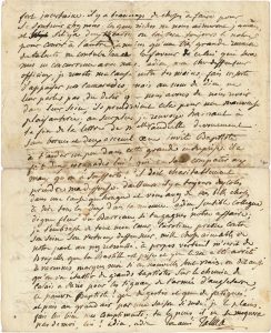 Longue lettre-plaidoyer à son ami avocat, à la suite de l’absence de Talma et de sa femme Caroline, partis en tournée en Hollande sans autorisation. « J’ai besoin d’un défenseur, puisque l’on m’accuse [...] si tu ne fais pas toi-même partie du chorus général de proscription exécuté à grand orchestre à notre bénéfice par le Théâtre de la République ». C’est à cause du mauvais état de ses affaires qu’il a été obligé de partir : « Le carême que nous faisions au Théâtre de la République n’a été qu’une cause très secondaire de mon départ. Nous aurions encore pu résister à, la diète, mais non aux menaces et aux avanies de nos créanciers »... Et il énumère ses dettes : 1200 livres de loyer, 800 livres d’étoffes, 500 livres à un marchand de modes à Bruxelles, etc... Il évalue « cette queue de créanciers à la somme de 6 mille et quelques cents livres. Quelques semaines nous suffiront pour compléter cette somme, attendu que nous faisons beaucoup d’argent ici. [...] Je n’ai plus qu’à me jeter à l’eau ou à fuir pour jamais de Paris ». Le Théâtre de la République devrait comprendre : « Par quelle cruauté veut-il donc me plonger dans un abyme dont il sait, à n’en pouvoir douter, que je ne pourrai jamais me tirer. Rien pour le présent, point de certitude pour l’avenir, des dettes par-dessus la tête, qu’est ce qu’on veut donc faire de moi ? [...] Songes donc mon ami dix mille livres par an à payer avant de mettre un morceau de pain dans ma bouche. Cela ne fait-il pas frémir ? » Il pense cependant que lui et sa femme peuvent être utiles dans un Théâtre de la République « bien organisé » ; du reste, il s’essaie à la comédie et Caroline à la tragédie pour pouvoir remplacer « la malheureuse Desgarcins ». Certes la situation des théâtres, en pleine réorganisation, est incertaine : « Les gens riches ne nous aimeront jamais et s’il y a deux théâtres on laissera toujours le nôtre pour courir à l’autre, à moins qu’une très grande réunion de talents ne contrebalance la faveur de celui qui sera remis en concurrence avec nous »...Il charge Bellart de plaider sa cause : « Fais en sorte d’apaiser mes camarades, mais, au nom de Dieu, ne leur parles pas du désir que nous avons de nous revoir dans leur sein ; ils prendraient cela pour une mauvaise plaisanterie »... [Un jugement de janvier 1798 condamna le couple défaillant, qui réintégra la troupe en février]. Reproduction page 40