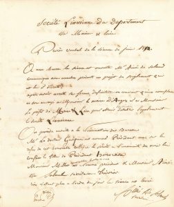 Registre des procès-verbaux de la Société Linnéenne d’Anjou, dès sa fondation à l’initiative d’Aimé de Soland (1819-1910), avocat, archéologue et naturaliste, directeur du Bulletin historique et monumental de l’Anjou de 1852 à 1870. Soland, secrétaire, a souvent rédigé et signé les procès-verbaux jusqu’à la fin de 1855, puis fut remplacé par le Dr P. Mabille. Y sont consignés les découvertes et rapports de ses membres, ainsi que la réception ou la lecture d’écrits de naturalistes, notamment sur la botanique, les poissons, les oiseaux, l’agriculture, des recherches géologiques et archéologiques, etc. À la fin, listes de membres (85 à cette époque, dont plusieurs médecins et l’imprimeur V. Pavie), et de correspondants non résidents (Eug. Chevreul, I. Geoffroy Saint-Hilaire, A. de Caumont...). On joint 3 convocations impr. avec ordre du jour et divers documents.