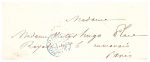 Remarquable correspondance de la duchesse au moment où elle publie ses Mémoires. (1832) : Elle accepte de participer à une œuvre alors que parait les 7e et 8e volumes de ses mémoires ; (…) mais qu’importe, j’ai une assez grande facilité de travail pour accepter une nouvelle charge dont j’espère me tirer tant bien que mal (…). Elle donne ses disponibilités et se tient à disposition de M. Williams ; elle poursuit en confiant avoir mis en musique la poésie de Victor Hugo ; Je veux que vous soyez mon interprète auprès de Monsieur Victor Hugo. J’ai fait de la musique sur les immortelles Ballades et l’une des Orientales (…). Plusieurs de ses vers admirables m’ont inspirés, à moi indigne, quelques notes plus ou moins bonnes. Mais elle n’ose lui écrire, moi qui depuis que je connais une ligne de M. Hugo me proclame hautement hugonienne, moi qui ne puis lire la colonne sans fondre en larme (…). Elle apprend par Ladvocat qu’Hugo veut s’inspirer de quelques scènes puisées dans ses Mémoires, et elle s’en réjouit et lui voue son admiration… Mardi septembre (1833) : longue lettre de 11 pages sur son amour pour JUNOT, leur "lune de miel" qui fut cinq années d’un bonheur comme celui du paradis ; après avoir passée une soirée dans l’intimité des Hugo, dont le ménage est en pleine crise, la duchesse veut ainsi se confier sur son expérience ; Vous avez une fille ; cette autre jolie enfant que j’ai laissé dans vos bras est aussi une fille. Ecoutez moi, pour toutes deux, elles auront même bonheur, même malheur, quelles tâchent de l’adoucir (…) Vous aurez vu dans mes Mémoires que Junot m’a éprouvée, m’aimant avec idolâtrie moi, pauvre jeune fille n’ayant pour dot que quelques vertus filiales (…). Elle évoque alors les tromperies de son mari, les souffrances atroces et la jalousie violente contre cette femme pour qui j’avais de la haine ; cependant elle ne cessa d’aimer et d’adorer Junot, malgré son cœur blessé. (…) Je ne fais pas ici du Roman ; il n’existe pas une femme plus franche, plus naturelle que moi. Mon cœur est comme il était à vingt ans ; aussi vrai, aussi aimant, aussi religieux dans ses affections (…). Pour corroborer ses Mémoires, elle envoie personnellement à Mme Hugo pour lecture, un volume de ses correspondances avec Junot en Espagne, qu’elle avait fait relier, et conclue : Répétez à votre fille que les bras de la femme soient toujours ouverts pour recevoir même le mari coupable (…) Jouissez de tous les biens que cette providence du cœur a déversé sur vous en vous donnant pour maître et pour soutien l’homme le plus remarquable de notre Epoque (…). Mars 1838 : invitation du couple Hugo, à une soirée musicale avec Panofka, Hertz et Rossi, pour les vents, le violon et le piano. Mai 1838 : les invitant pour son lundi musical, en compagnie notamment de Mme Menessier et les encourageant ainsi : Ne vous laissez pas gagner de paresse par la soirée de M. de Custine (…). Reprochant aux Hugo leur silence ; Monsieur Hugo m’oublie tout à fait. Je ne lui écris plus parce qu’il a certes bien autre chose à faire que de lire mes lettres (…). La duchesse lui dédie la musique qu’elle a faite sur La Fille d’Otaïty et à Hugo celle sur Le Pas d’armes du Roi Jean. Victor Hugo l’oublie : Quant à votre mari, il ne veut avoir que la gloire pour amie. Peut-être a-t-il raison (…). Elle annonce être "Patronesse des Polonais", ajoutant : dans d’autres temps et lorsque j’étais gouvernante de Paris, ma fortune était celle des pauvres de Paris (…). JOINT une pièce aut. signée de la duchesse d’Abrantesse, comme quittance en recevant 125 fr à valoir sur le vol. 7 de ses Mémoires, des syndics de la faillite de Ladvocat (Paris, 17 juin 1832, 1 pp. in-8 oblong).