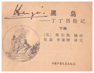 Version chinoise des Aventures de Tintin, le fameux album de l’Île noire, avec envoi autographe (signature "Hergé").