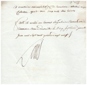 Approbation du rôle de la capitation des officiers de justice du département de Saint-Quentin, généralité d’Amiens, pour l’année 1789, avec la liste nominative des officiers du baillage et de l’élection, avec leur contribution pour la taxe.Très belle pièce au début de la Révolution, avec signature autographe de Louis XVI, contresignée par ses ministres Barentin, Lefevre d’Ormesson et Lambert.
